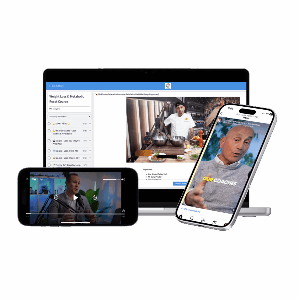 This Updated & Expanded Video Course and Resource Portal is FREE to all active re:vitalize coaching members. If you are an active re:vitalize member and want access, please email us at coach@revitalizeweightloss.com, text us at 480-435-3557 or webchat us below. If you are not an active member, you can still get access at the link above or by reaching out.